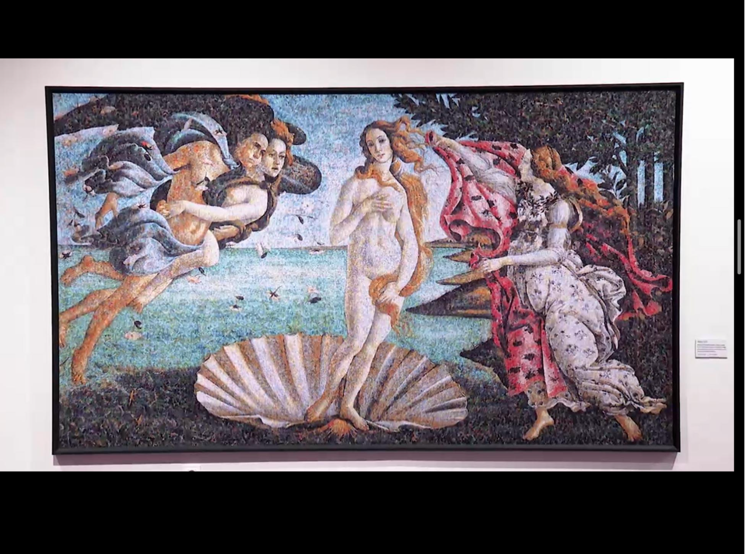 멀리선 익숙한 명화처럼 보이지만, 가까이 다가서면 그림 속은 플라스틱 병뚜껑, 빨대, 비닐봉지 같은 쓰레기가 가득합니다.