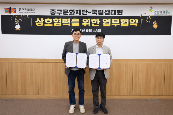 [서울와이어 현지용 기자] 국립생태원이 지난 13일 서울 중구문화재단과 '문화예술 협업 및 공동 전시를 위한 업무협약'을 체결했다고 19일 밝혔다.