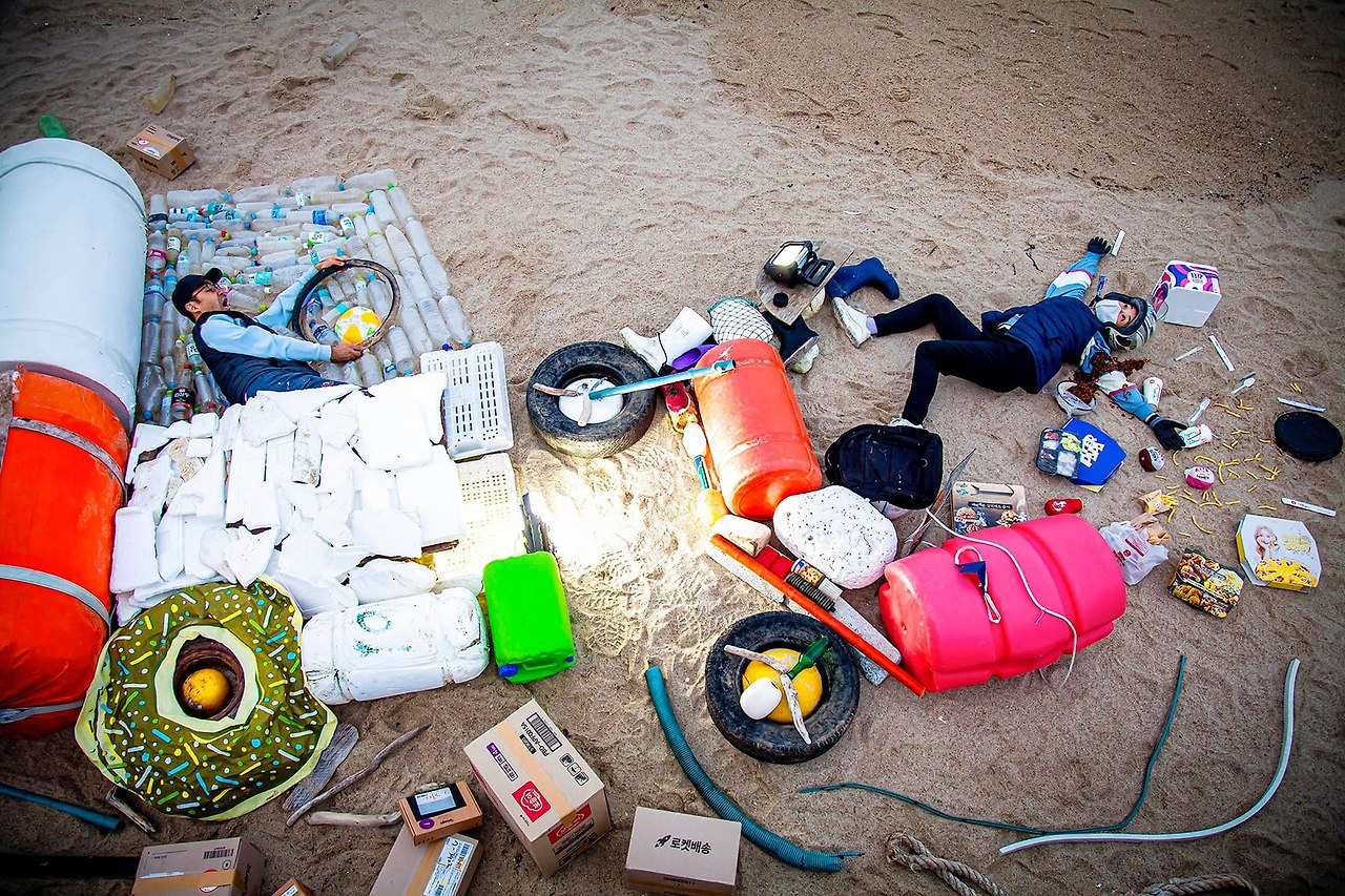 ‘바다 빗질’은 바다에서 밀려온 여러 쓰레기들을 모아서 이야기를 구성합니다. 바다에 밀려온 쓰레기는 성장주의의 한계에 넘쳐서 밀려오는 자본의 시체더미 같습니다. 세계 안에서 일어나는 위험한 일들은 조용히 우리의 눈을 가리고, 자연, 동물, 사람도 쓰레기처럼 버려집니다. 재난, 박해, 빈곤, 전쟁에 의해 땅에서 쫓겨난 사람들은 바다로 떠밀려가기도 합니다.